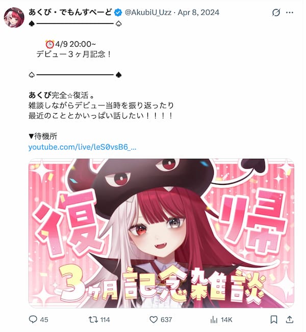 VTuberはキャラクターと演者の境界が大事なので、守るところを守っているのは健全だと思います。
