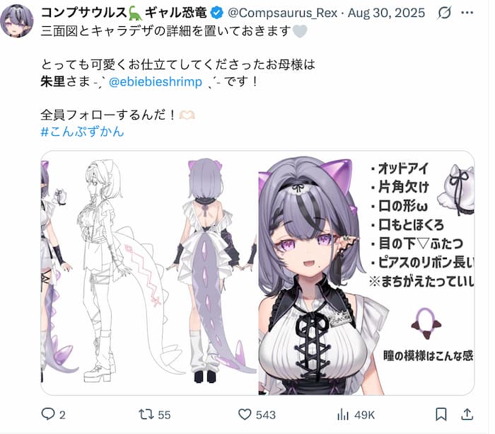 この記事では、コンプサウルスについて前世と噂される背景、顔バレ、所属先の仕組み、さらに、衣装デザインやイラストレーター情報を中心にお話していきます。
