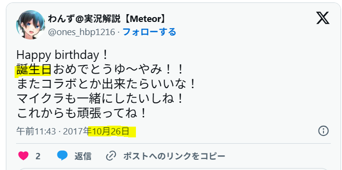 さんに関して、1998年10月26日生まれという情報を載せているブログがあります。
