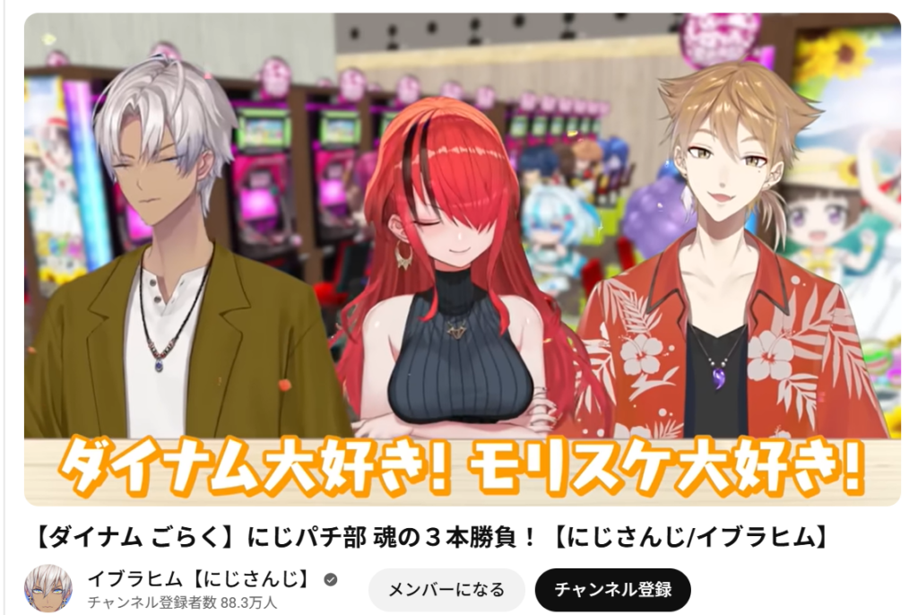 2025年には同じ事務所のイブラヒムさんのチャンネルでレイン・パターソンと3人でパチンコホール「ダイナム」のコラボPR動画を発表しました。